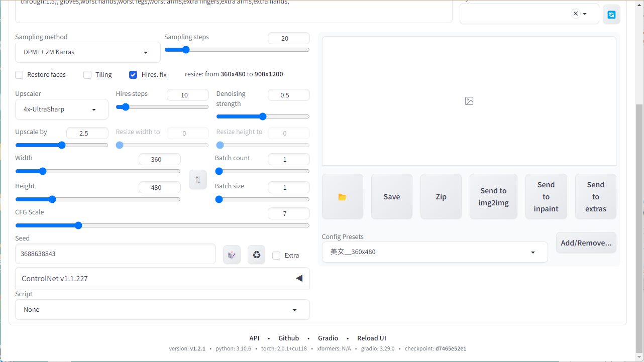 Steps: 20, Sampler: DPM++ 2M Karras, CFG scale: 7, Seed: 3688638843, Size: 360x480, Model hash: d7465e52e1, Model: ghostmix_v12, Denoising strength: 0.5, Clip skip: 2, ENSD: 31337, Version: v1.2.1, Hires upscale: 2.5, Hires steps: 10, Hires upscaler: 4x-UltraSharp