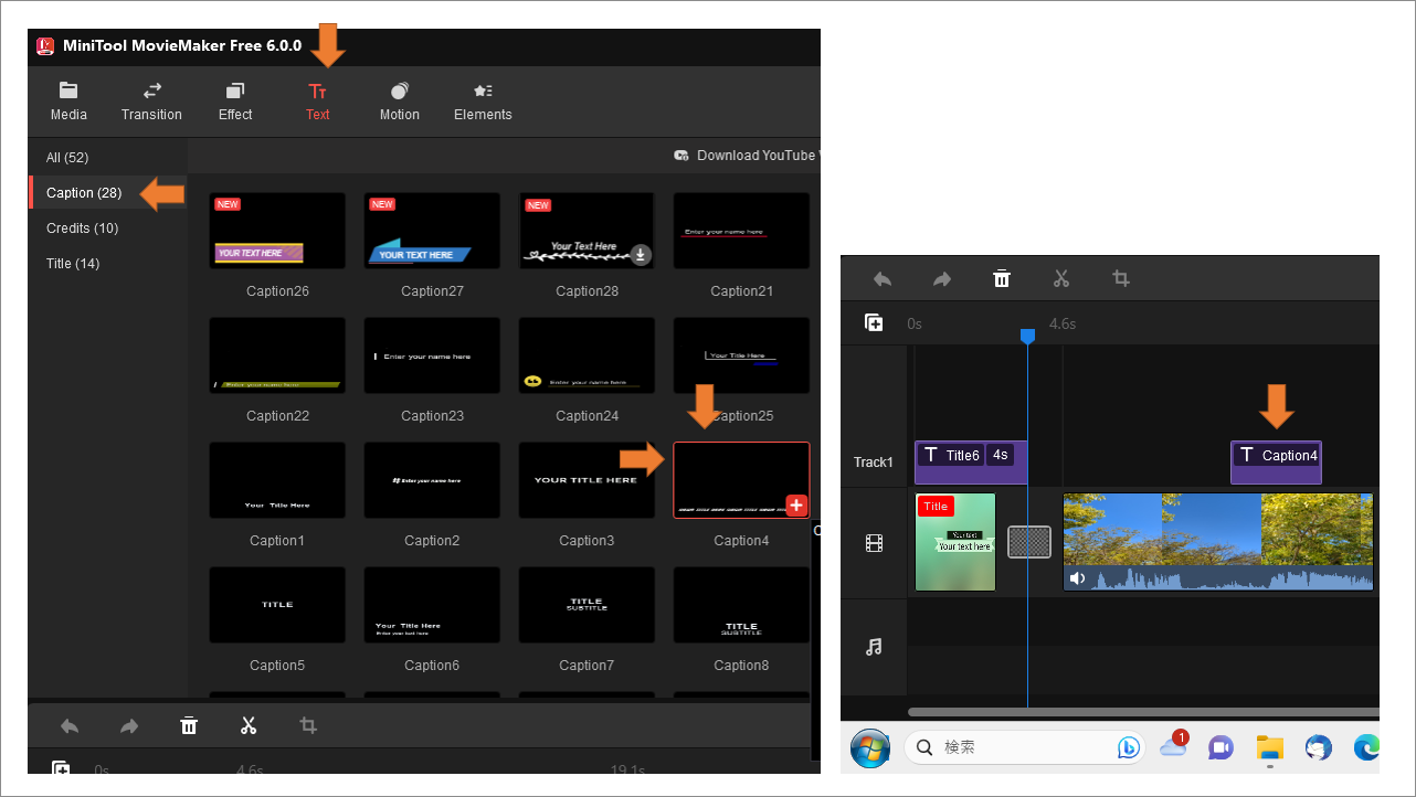 操作方法7 Caption で文字を挿入しましょう。