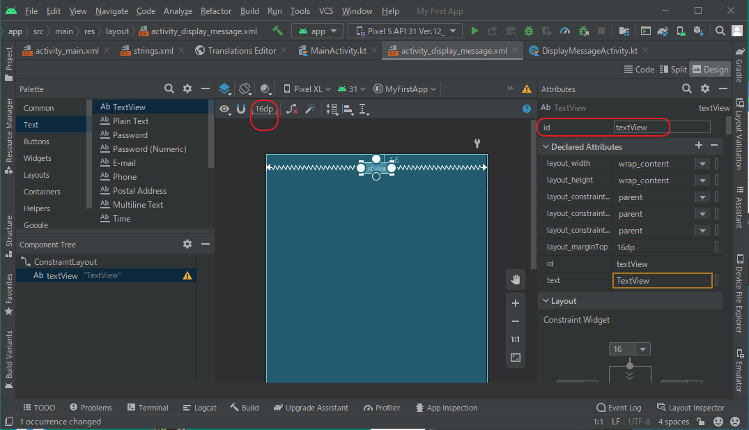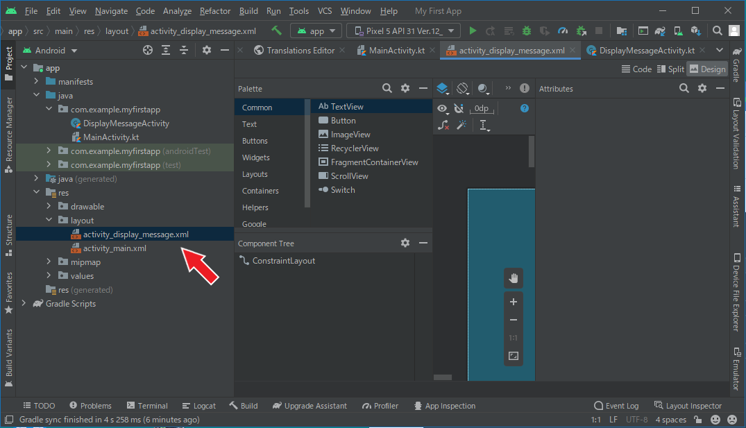 app > res > layout > activity_display_message.xml ファイルを開きます。