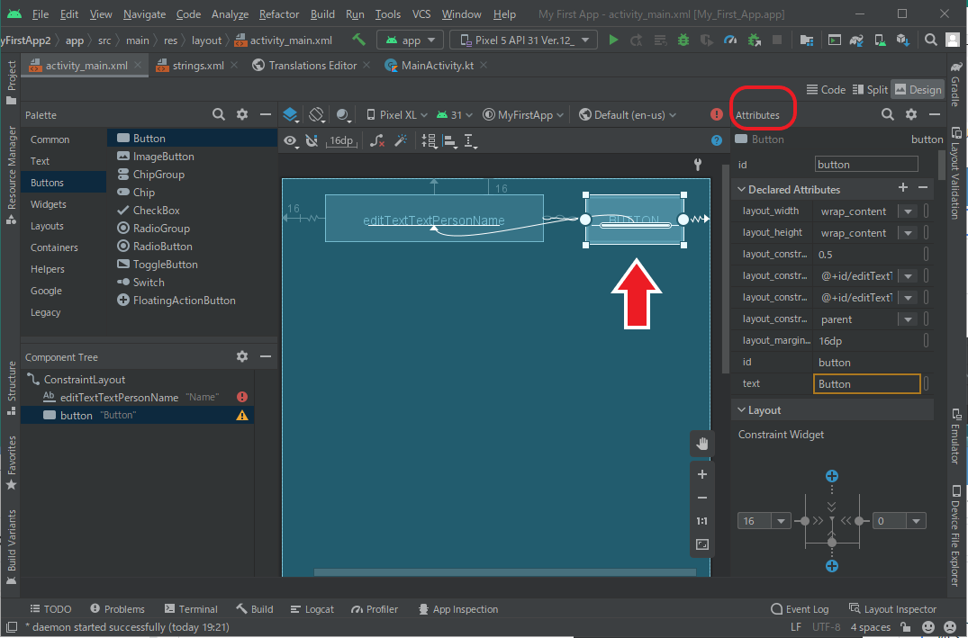 a.Layout Editor でボタンを選択します。