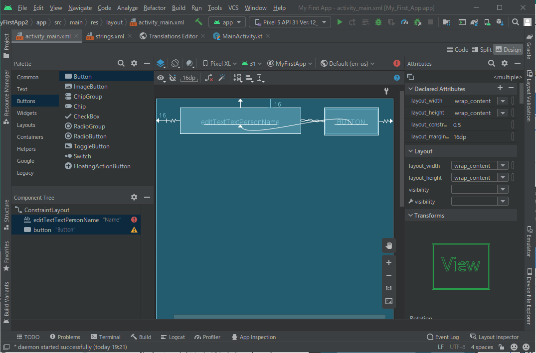 Layout Editor を開く ~ ボタンを追加する