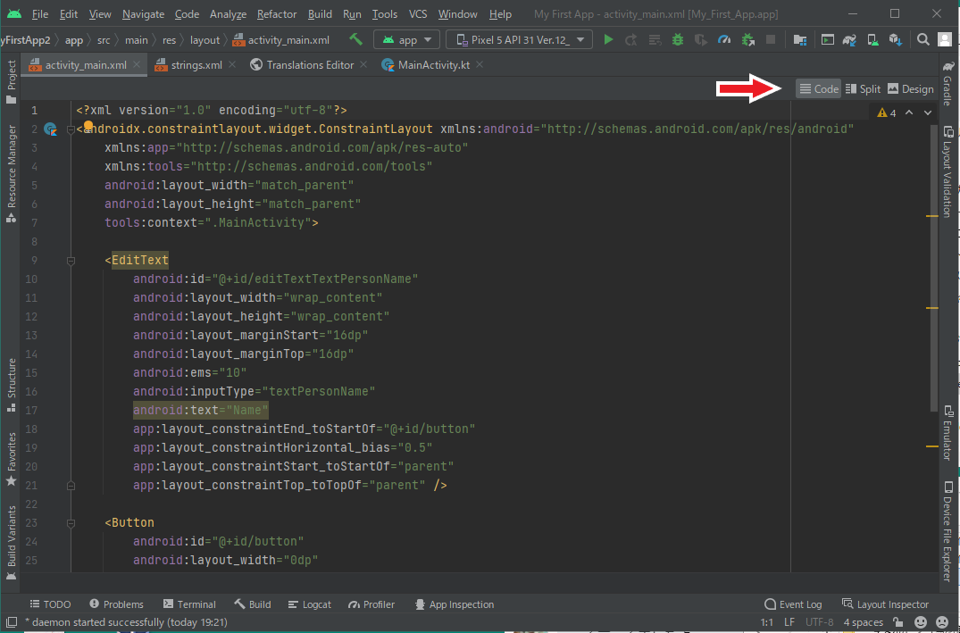 https://developer.android.com/training/basics/firstapp/starting-activity#kotlinをクリックします。これにより、Autoconnect が有効になります(図 1 を参照)。