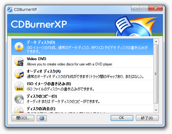 フリーソフトウェア CD Burner XP をダウンロードします。
